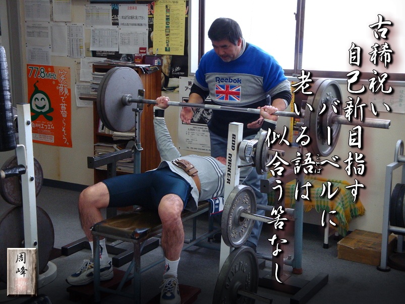 2010年2月28日、阪南大学(大阪)で行われる第10回ジャパンオープンベンチプレス選手権大会マスターズ(M4)67.5kg級にエントリーしている岩崎実(70才)選手。大会前の最終調整の為、当(平泉アスリートセンター)ジムに訪れました。 岩崎さんは昨年・一昨年とM3の部で2年連続2位。今年は70才になりM4に出場し、優勝候補の筆頭です。 続きを見る(YouTube)>> |
