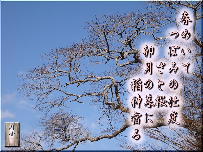 春めく頃、自宅の門の前にあるソメイヨシノも、そろそろつぼみの準備をしているのではないだろうか。稲神とは、「春になって里に下りて来る稲(サ)の神様が憑依する座(クラ)」から、サクラと呼ばれているという一説もある。 |