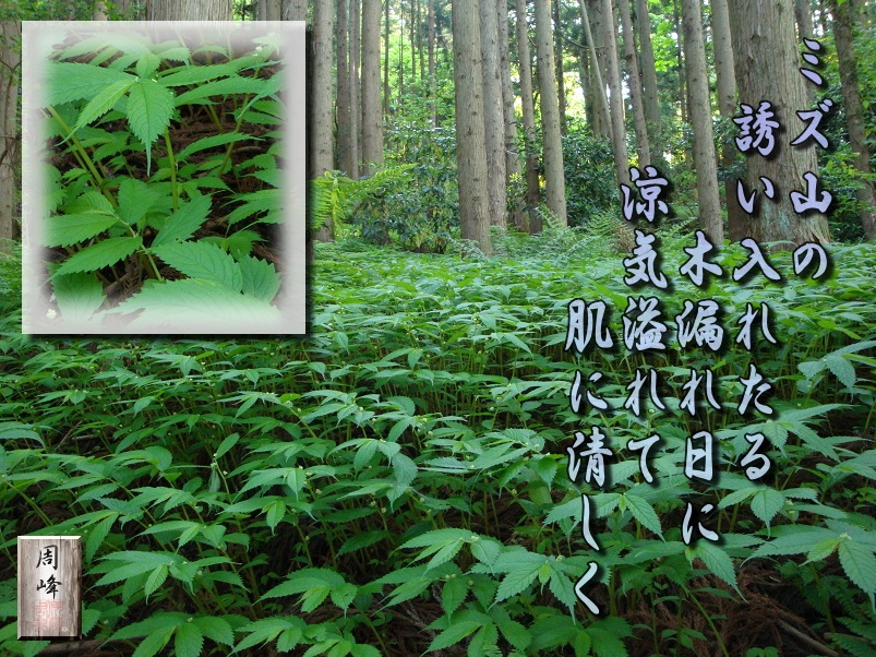 裏山の杉林一面に、ミズが広がっている。何代か前の先祖が植生したものと思われるが、今では、坪数でいうと約1.000坪以上は広がっているだろうか。 毎年春先になると、酢味噌和えや漬物にしていただいている。いただくといっても、ほんの僅かな量である。 その大半は、杉林の肥やしか、或いは涼しさを目で楽しませて 続きを読む>> |