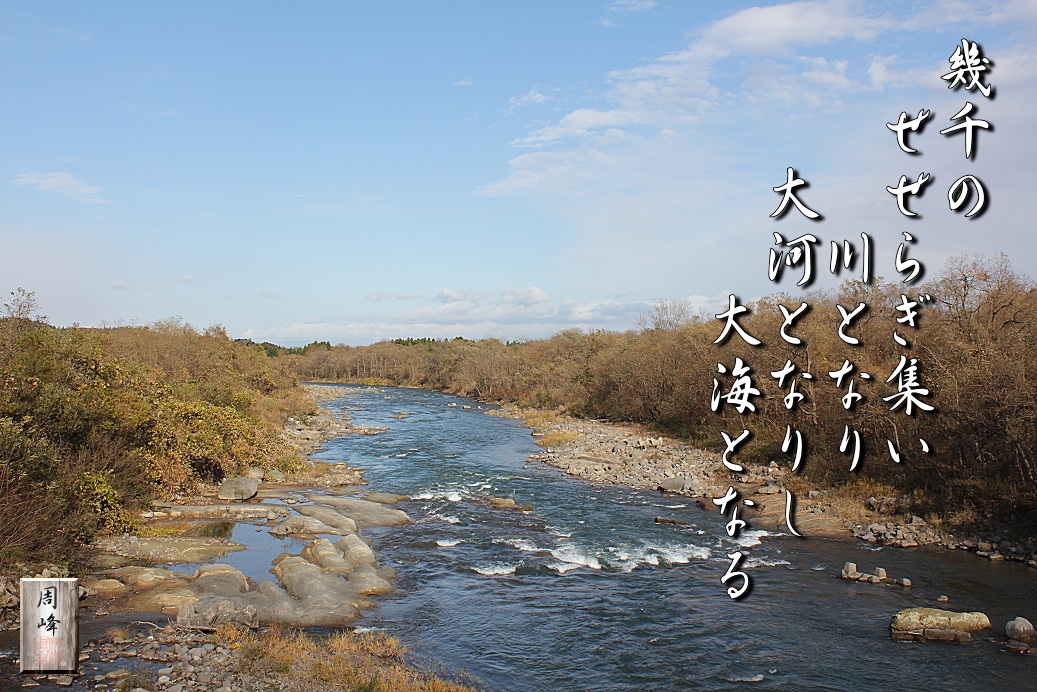 無数の湧水が集い沢となり、多くの沢が寄り集まって川となる。 そして大河となって大海原となる。 川の流れのように 知らず知らず 歩いてきた 細く長い この道 振り返れば 遥か遠く 故郷(フルサト)が見える 続きを読む>> |