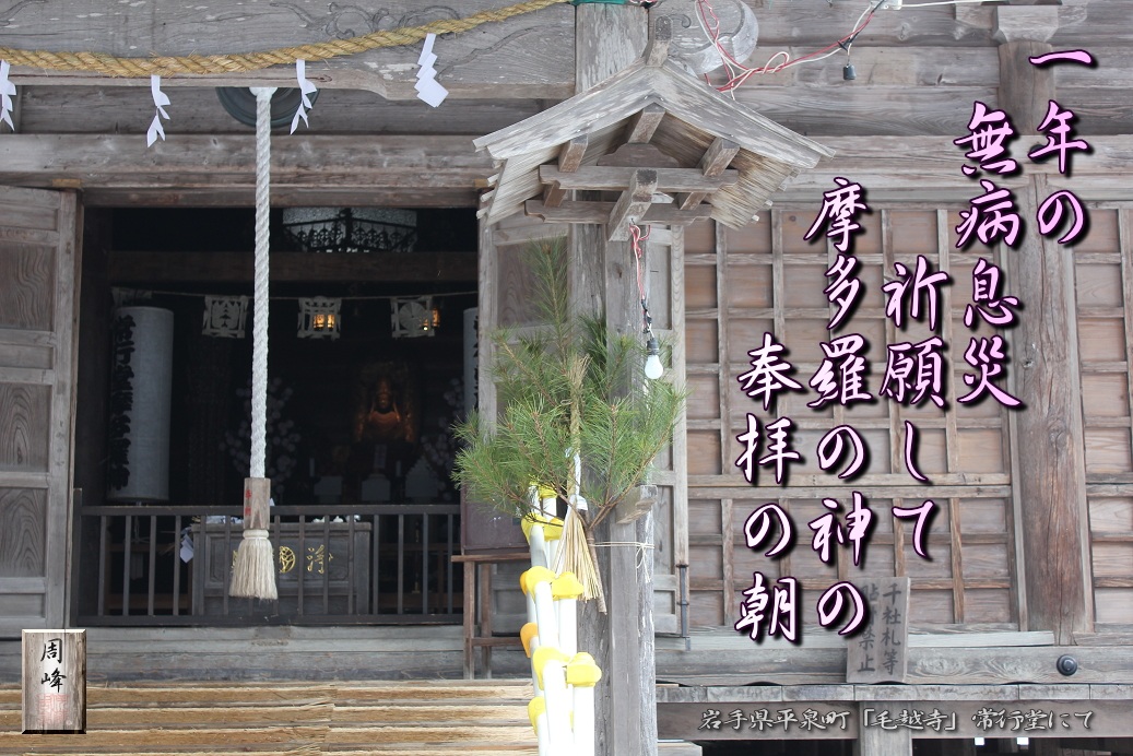 毎年正月には、岩手県平泉町にある毛越寺を訪れ、一年の無病息災を祈り参拝している。この毛越寺の境内北側には、阿弥陀経および念仏の守護神といわれる摩多羅神が祀られているが、参拝する度の拝礼の仕方に迷ってしまうのである。 「前ならえ」で、前に拝んでいる人たちと歩調を合わせる格好で合掌のみの拝礼だが、考えてみればお寺の境内とはいえ神様を奉っている。 続きを読む>> |