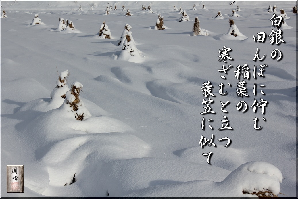 氷点下の毎日、寒い・・・ 田畑もすっかり雪に覆われ、一面白銀の世界となった。 車の走行中、目に留まった光景が実に面白くユニークに感じた。 車を道の傍らに止め、おもむろにカメラを取り出し、その奇妙な光景を写真に収める事にした。 続きを読む>> |