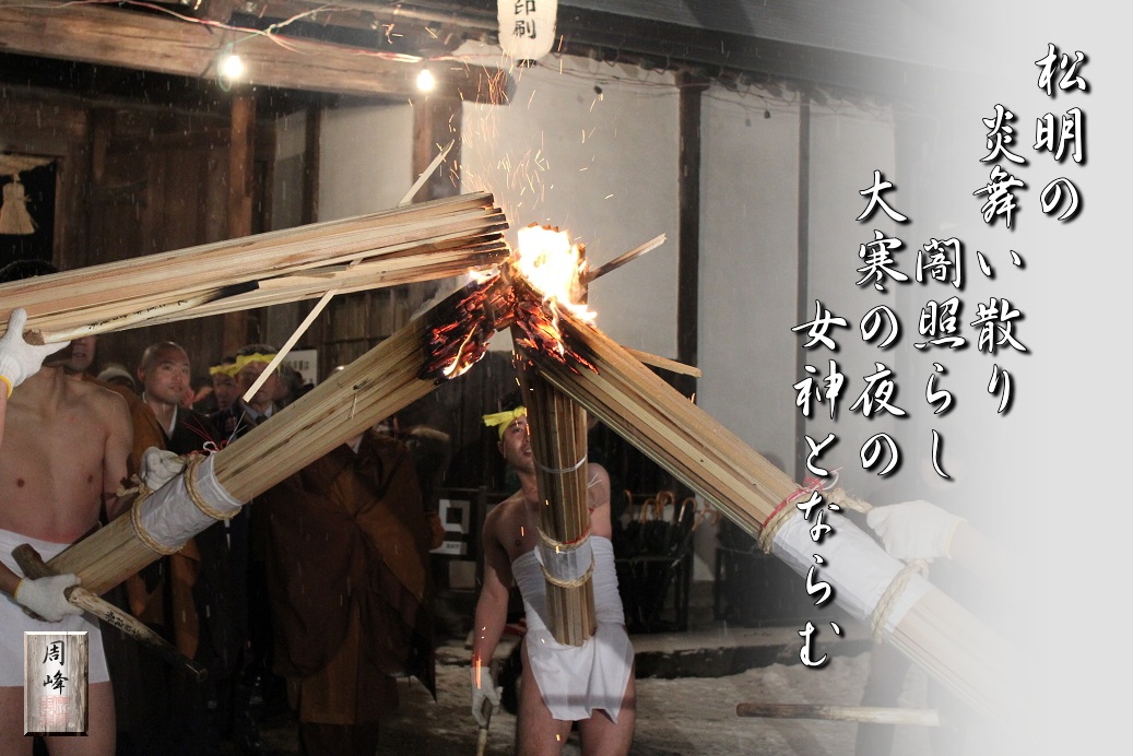 勇壮な火祭り「二十日夜祭」も終わり、平泉の町内は、何時もの静寂を取り戻している。時間の都合から、私は未だ、本来二十日夜祭で一番のクライマックスとされる祈りの舞、「延年の舞」を目の前で見た経験がない。 今年こそはと思っていたが、どうしても時間のやり繰りが難しい。 延年の舞は、開山以来連綿と行われてきた常行三昧供の 続きを読む>> |