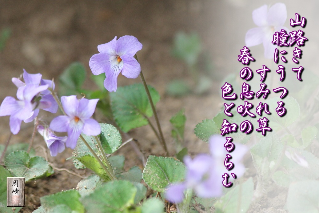 車を路肩に止め、用を足そうとふと土手に目をやると、小さなスミレの花が目に留まった。流石にここでは不味いと、直ぐさま場所を移動する事と相成った。花を愛でる余裕などなかったが、一時の解放感もあり暫し見入ってしまった。普段は何気なく見過ごしていた小さな花でも、こうしてじっくり見てみるとその美しさが分かってくるものだ。余裕を持つ事の重要性を、この小さなすみれの花に教わったような気がする。 |