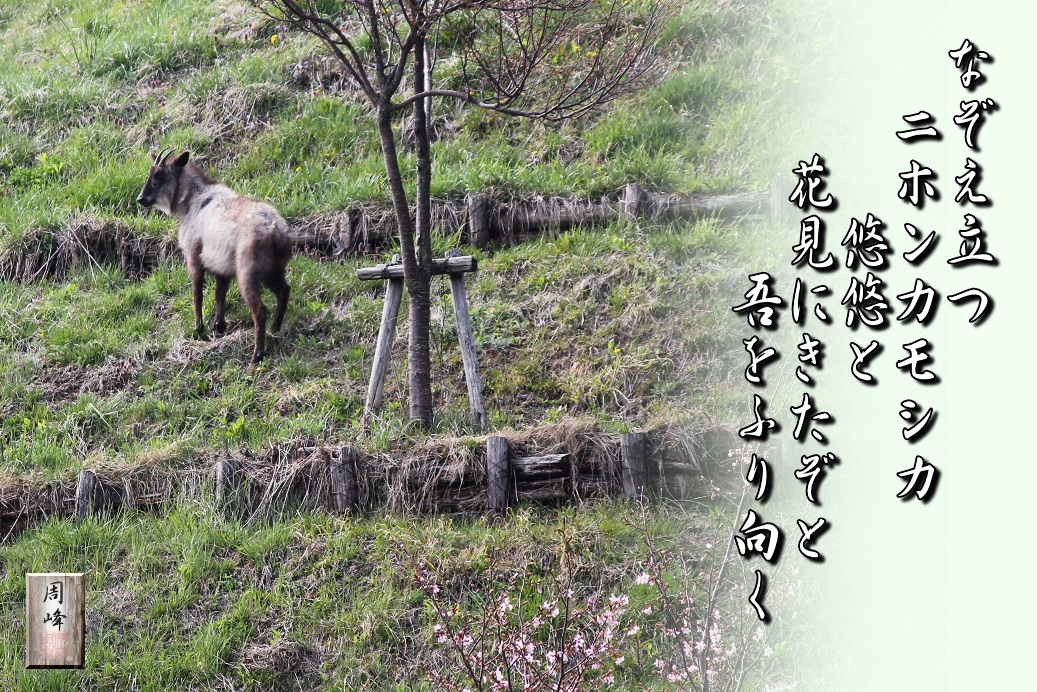 つい2日程前、桜の写真でも撮影しようかと「西行桜の森」に立ち寄り、 駐車場に車を止め、徐にカメラを取り出し肩に担いだところ、何やら後方から何かの気配が。ふと、振り返ってみると、高みから悠然とこちらを虎視する一頭のニホンカモシカが立っていました。私をまったく警戒する様子もなく、こちらを見ていると思えば、直ぐ下に 続きを読む>> |