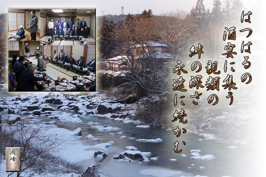 恒例の伊藤家新年会が、厳美渓温泉“渓泉閣”で行われた。 以前は、親類のうち一軒でも不幸があれば、翌年の新年会は中止だった。 近隣に住む親類縁者の合計が24世帯。人数にして100名以上は居るので毎年必ずと言っていいほど不幸がある。その為十数年間も新年会をやらなかったなんて事もあった。 そんな事から約10年程前に、 続きを読む>> |