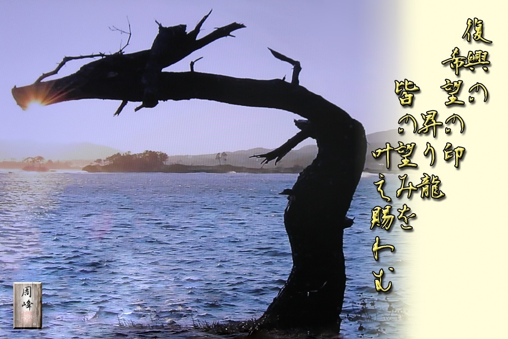 宮城県気仙沼市の「昇り龍」 写真を撮りに行きたいと思っているがなかなか時間が取れそうにない。 なので、先日ニュースに写っているのを写真に収めたものに、多少の修正を加えそれに短歌を詠んでみた。龍は架空の生き物だろうが、私はこれを復興への印、そして奇跡であると信じたい。 続きを読む>> |