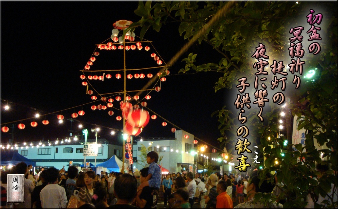 8月14日、「せんまや夜市」の行事の一環、燈立(あかしたて)の手伝いを兼ね、初めて参加させて頂いた。 燈立(あかしたて)とは、歩行者天国と なった一関市千厩町の商店街の路上で、竹竿の四方に張られた縄や竹組に、ロウソクに火が灯った提灯を吊るし、そのロウソクが消える頃を見計らい、ゆすりな がら地面にゆっくりと倒し、 続きを読む>> |