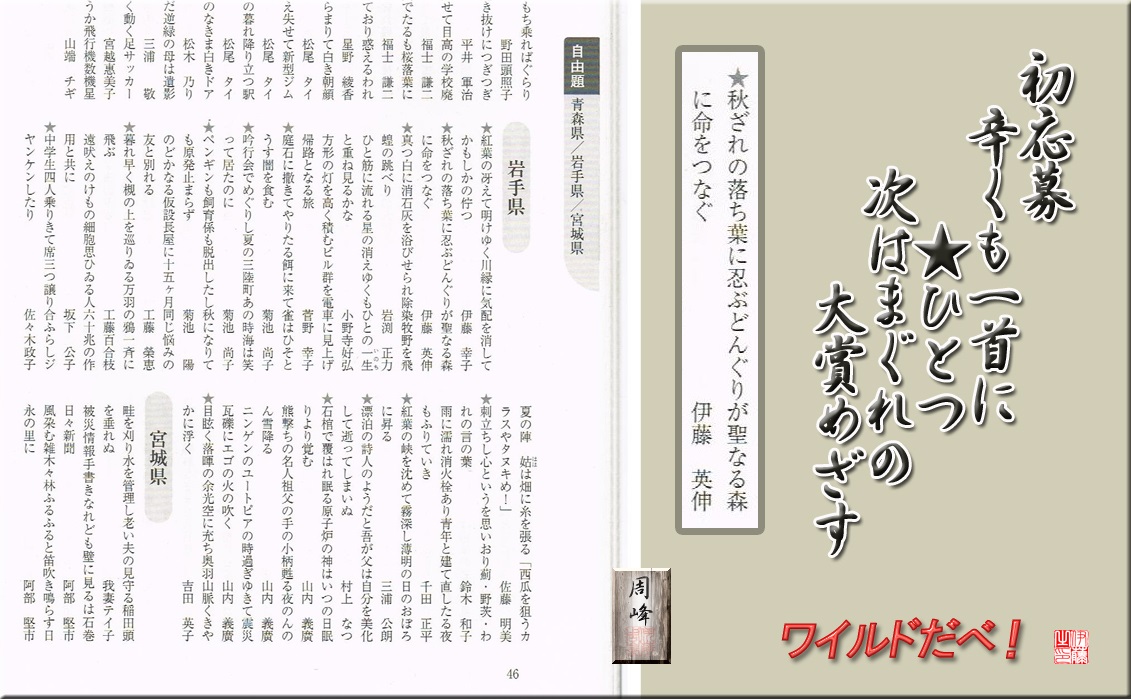 自宅に戻ると、テーブルの上に小包が置いてあった。角川学芸出版からだった。 「はて、何だろう?」と封を開けてみると、表紙に「短歌生活4号」とあった。「第4回角川全国短歌大賞」の作品集だった。「はて、なんで俺んちに?」と疑問を抱え、記憶の糸を辿りながらページをめくっていくと、・・・思い出した! 昨年の暮だったろうか、「物は試し、あわよくば」と応募した 続きを読む>> |