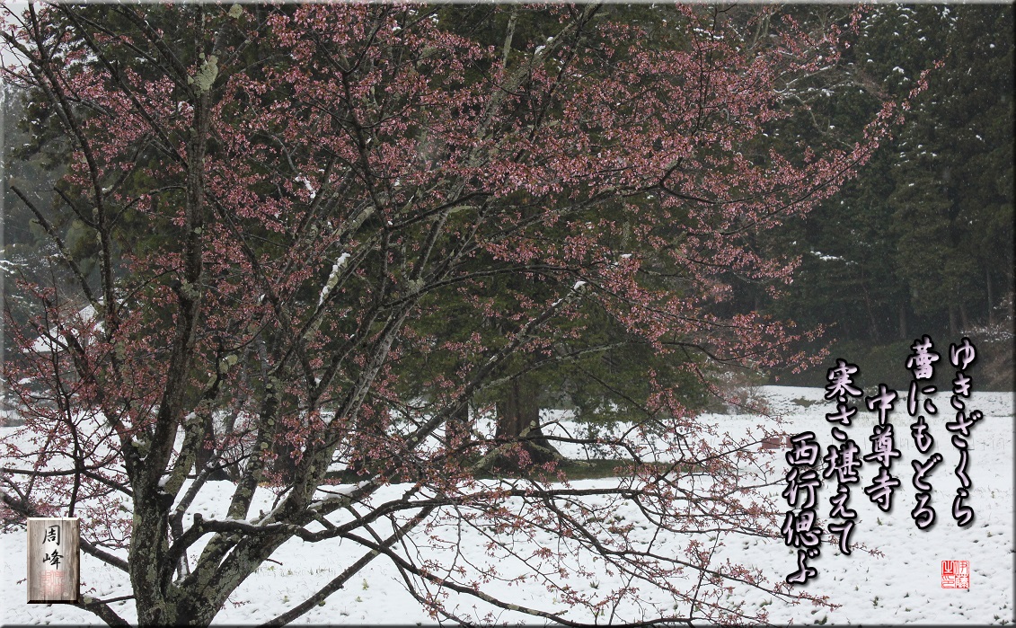 今日は寒の戻りで、午前中は積雪もある寒い一日だった。 そんななか、中尊寺主催の第34回西行祭短歌大会が中尊寺本坊で行われた。 午前9時より西行法師追善法要が営まれた後、本堂裏手にある大広間を会場に短歌大会が行われた。34回目となる今年は、講師に小高賢さんが招かれ、「人生の歌・歌の人生」と題したユーモアたっぷりの講演では、 続きを読む>> |