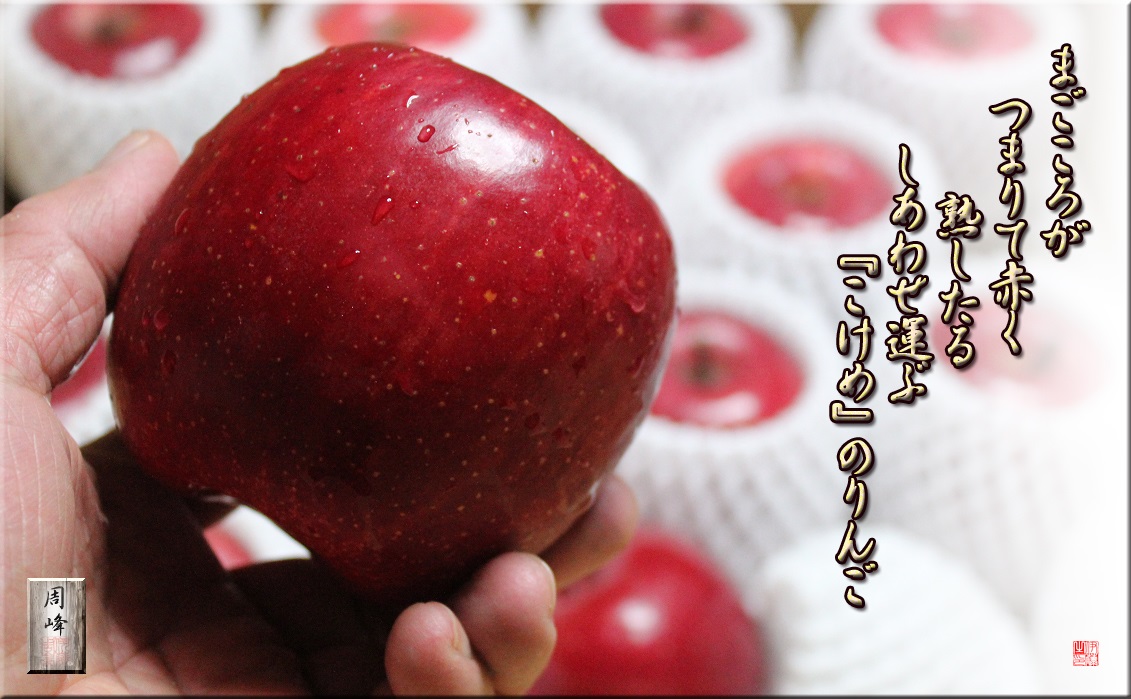 昨夜自宅に戻ってみると、テーブルの上にダンボール箱がどんと置いてあった。 何だろうと近づいてみると、外箱には「こけめ農園」と印字されてあった。 早速中を覗いてみると、実に見事な、真っ赤に熟した大粒のリンゴ(サンふじ)が並んでいた。夜中の11時過ぎとは言え、早速ガブっといきたかったが、先ず最初にご先祖様と神棚に供える事にし、それから徐ろに、ガブっといった。 続きを読む>> |