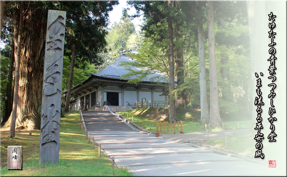 昨日、平泉町の中尊寺 本坊大書院に於いて、選者の日本歌人クラブ名誉会長の秋葉四郎 先生を迎え、第36回西行祭短歌大会が行なわれた。午前9時より本坊にて平泉縁の西行法師 の追善供養が厳粛に営まれ、本坊北側の大広場(大書院)に舞台を移し、100数十名の参加者を前に中尊寺の山田貫首のありがたいご講話を頂戴した。 その後今回の選者である秋葉先生のご講演が始まった。 続きを読む>> |