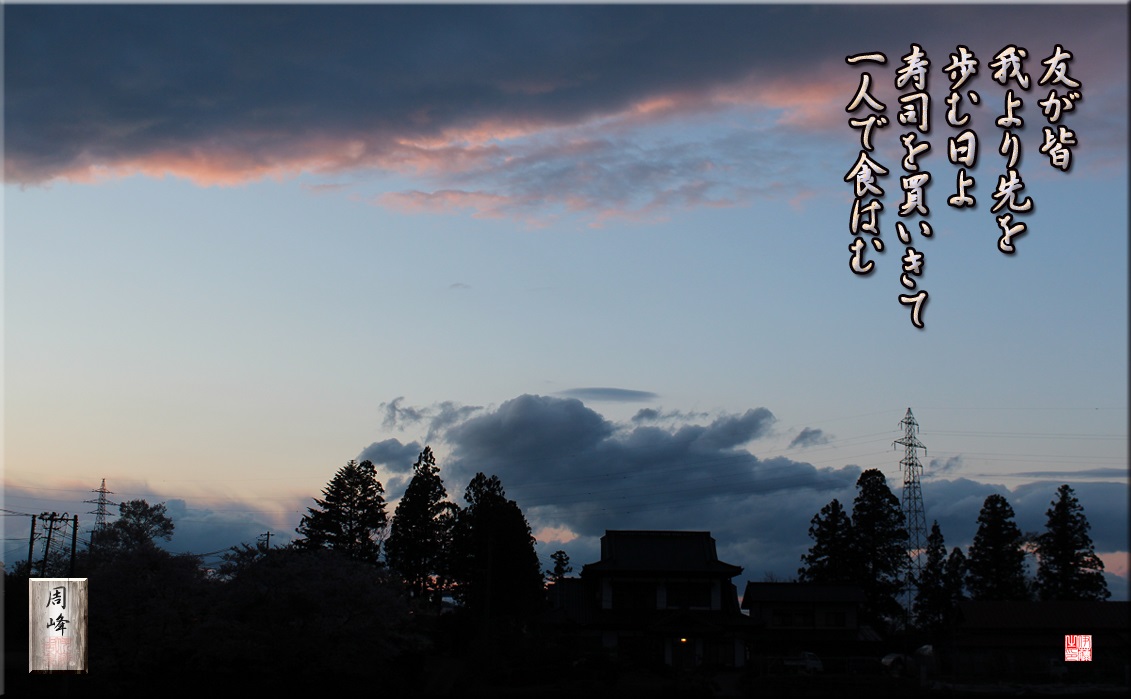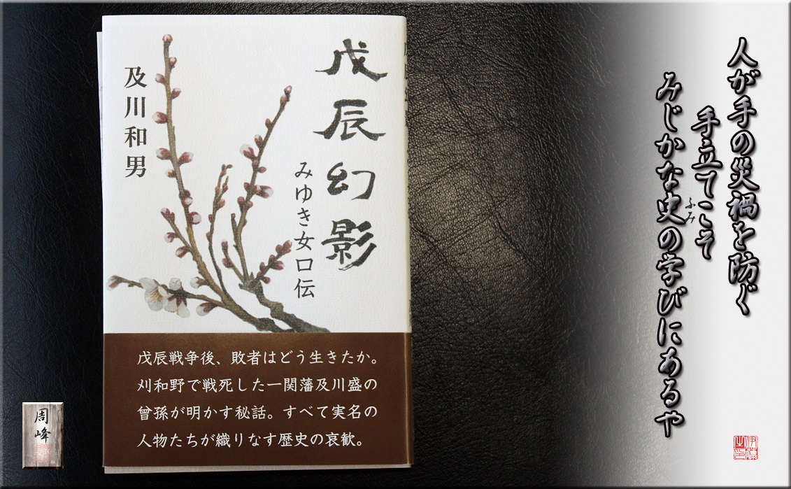 作家の及川和男先生(元・一関市立図書館名誉館長)より、私の拙著、3作(冊)目のフォト短歌エッセイ集「泡沫」謹呈へのお礼にと、幸甚なるお手紙と近著が自宅に届いた。頂戴した近著「戊辰幻影 みゆき女口伝」の見返し部分には、先生直筆のサインがあった。及川先生のご先祖は武士。一関藩士である。曽祖父及川盛氏は戊辰戦争にて最期を遂げた。若年28才であった。 続きを読む>> |