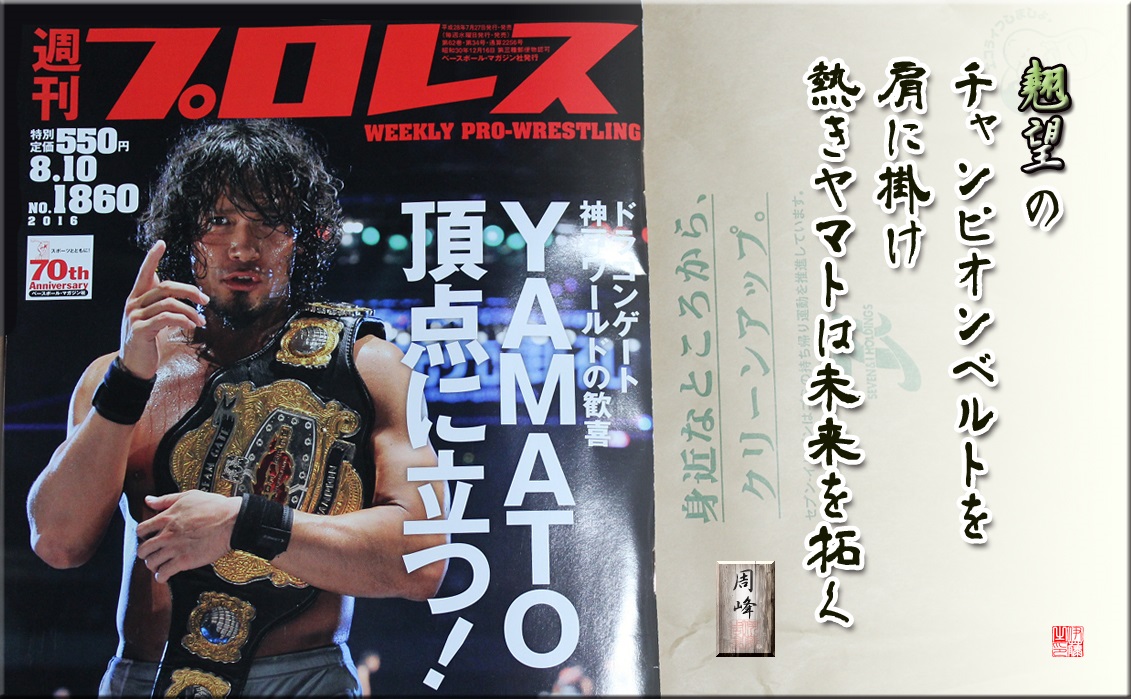 コンビニで用を足そうと雑誌のコーナーを通り過ぎようとしたその時、一冊の雑誌の表紙を飾る写真が妙に気になった。その雑誌とは週間プロレス。表紙の人物は一関市出身のプロレスラーYAMATO(ドラゴンゲート・34才)選手だった。 去る7月24日、神戸ワールド記念ホールで行なわれたドラゴンゲート「KOBEプロレスフェスティバル2016」オープン・ザ・ドリームケント選手権60分 続きを読む>> |