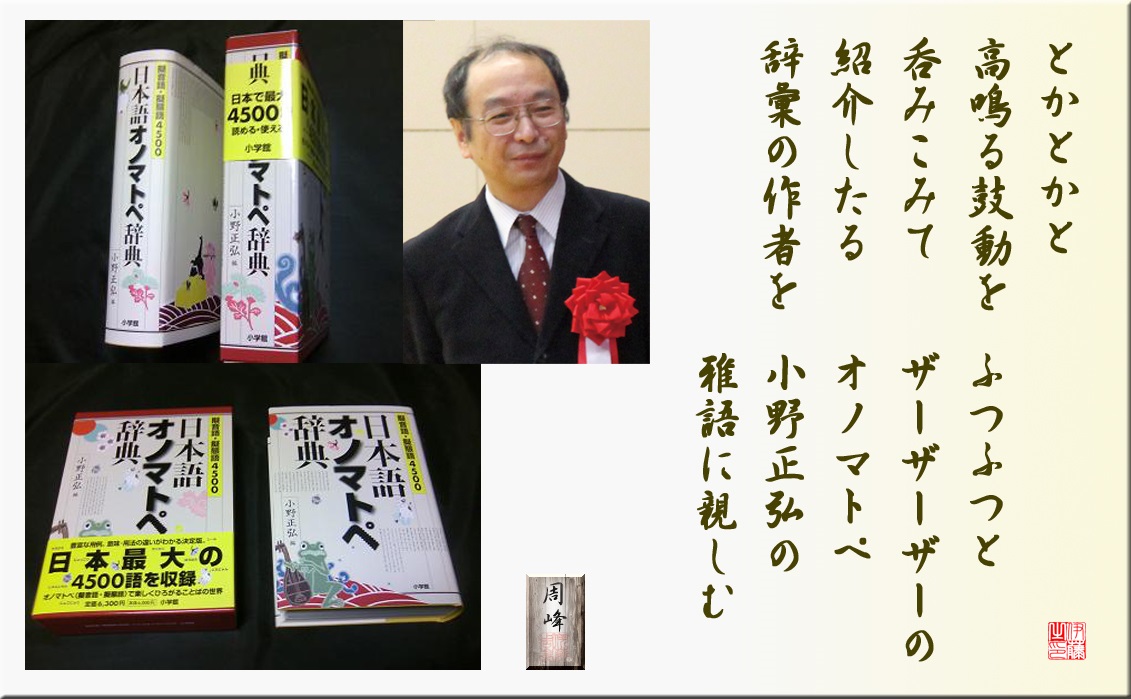 オノマトペ研究の第一人者として知られる、明治大学の小野正弘教授 ↓による「“日本語の魅力再発見”オノマトペ(擬音語・擬態語)のおもしろ世界」と題する講演が、昨日(9月22日)、岩手県一関市田村町の世嬉の一 クラストン(石蔵ホール)で行われた。 並べてあった椅子が足りず、急遽奥から取り出す程の盛況ぶり。 定刻の午後2時から、畠中祥夫(文学の蔵副会長)先生 続きを読む>> |