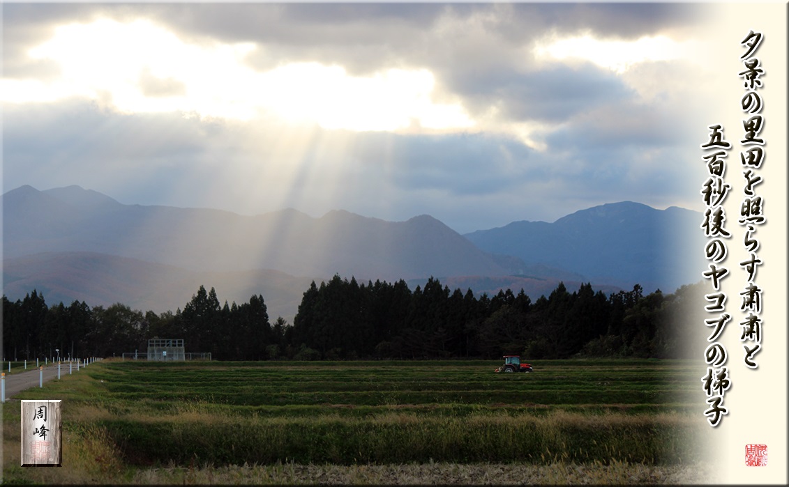 米の検査も終盤を迎え、検査員としての職務も、残すところあと1回の予定。 今年は萩荘地区の検査が多く、9月下旬の今年初の検査や、今年最後の検査も萩荘地区になりそうだ。今年の印象としては、出穂時期の高温による影響か、白未熟粒の混入が気になりはしたものの、分析検査を幾度となく施したが、殆どは落等させるほどではなかった。昨日、本寺地区で行った検査も、うるち米及び餅米全てが 続きを読む>> |